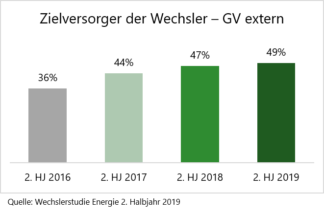 Die Insolvenz hat sich nicht nur auf die Anzahl der Wechsler, sondern auch auf das Wechselverhalten und die Anbieterpräferenzen ausgewirkt. So konnten Grundversorger, die außerhalb ihres Grundversorgungsgebietes vertrieblich aktiv sind, im zweiten Halbjahr 2018 und 2019 verstärkt Kunden gewinnen. Der Anteil der Wechsler, die sich für solche Tarife entschieden, ist auf 49 Prozent gestiegen: