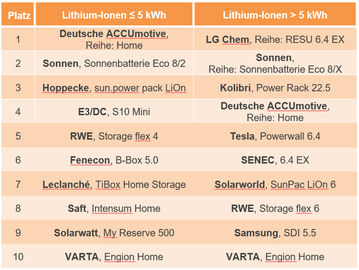 Sowohl für Anbieter als auch Verbraucher wird es bei einem wachsenden Angebot schwieriger, den Überblick zu behalten. Abhilfe schaffen Produkttests mit anschließender Bewertung. Die Juli-Ausgabe von Energiemarkt Aktuell gibt bspw. die wichtigsten Ergebnisse eines Haushaltspeichertests wieder, der 150 Systeme nach den Kriterien „Kosten pro Kilowattstunde“, „Maße und Installation“ und „Herstellerservice“ bewertet.
