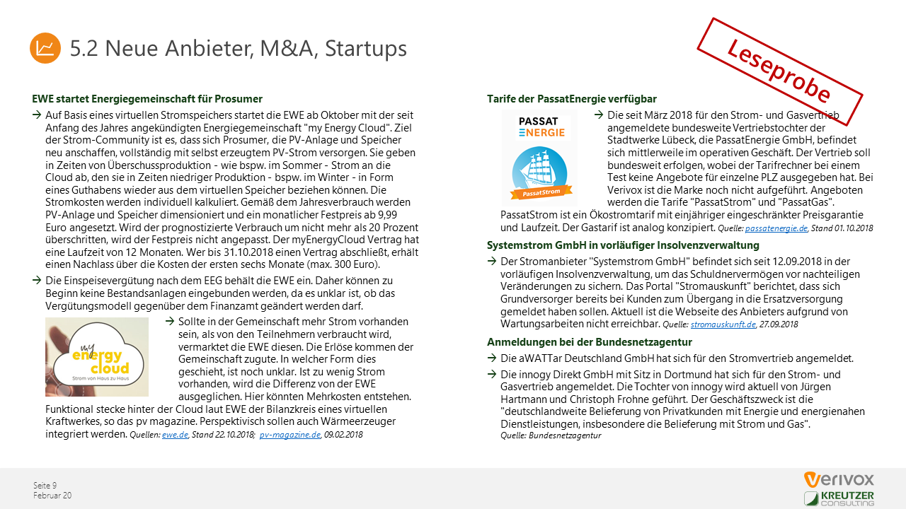 | September 2019 | Geschäftliche Entwicklung der neuen Anbieter auf dem Energiemarkt |