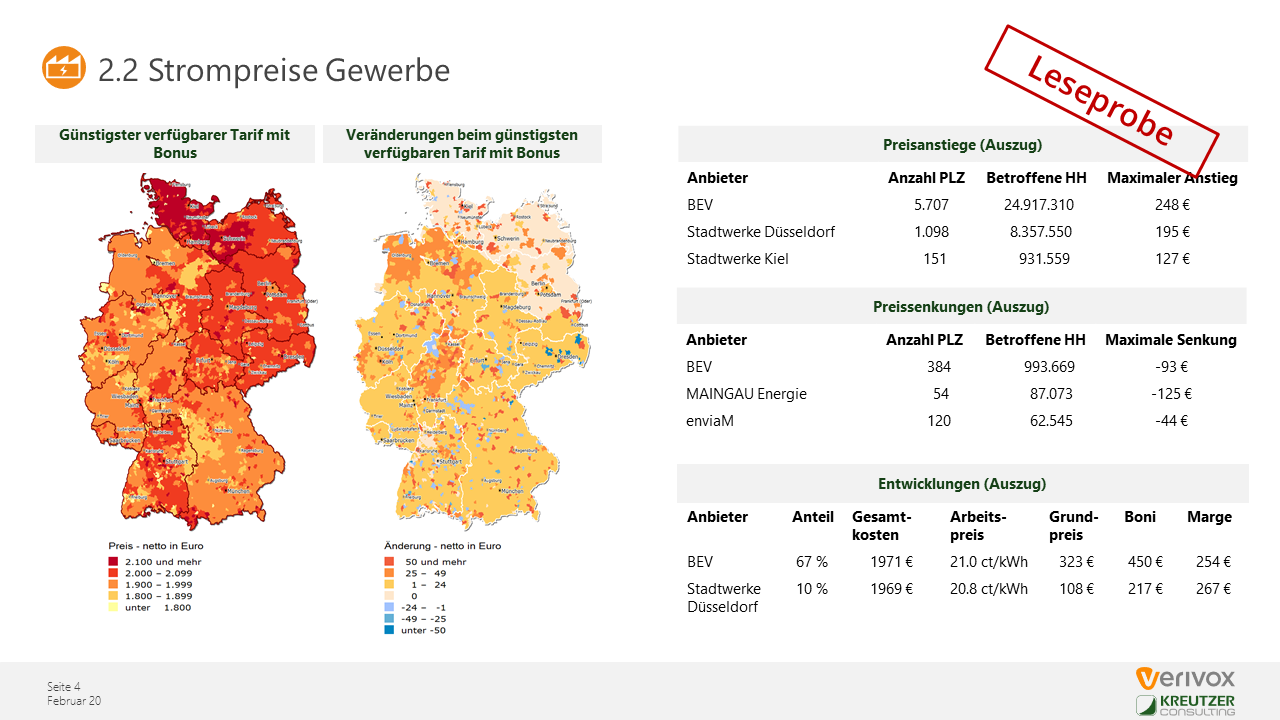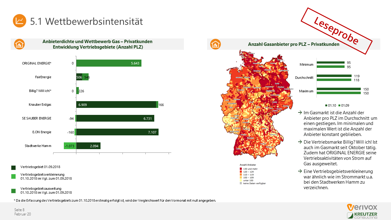 KREUTZER Consulting und Verivox analysieren monatlich die wesentlichen Entwicklungen im Wettbewerb um Haushalts- und Gewerbekunden auf dem deutschen Strom- und Gasmarkt.