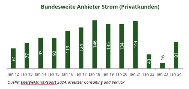 Günstige Neukundenangebote waren wieder verfügbar, während viele Bestandskundenverträge nach wie vor oberhalb der Preisbremsen lagen. Eine entsprechend hohe Preisspreizung zeigte sich im Markt. Daraus resultierte bereits 2023 ein erhöhtes Wechselaufkommen, das auch für 2024 zu erwarten ist.