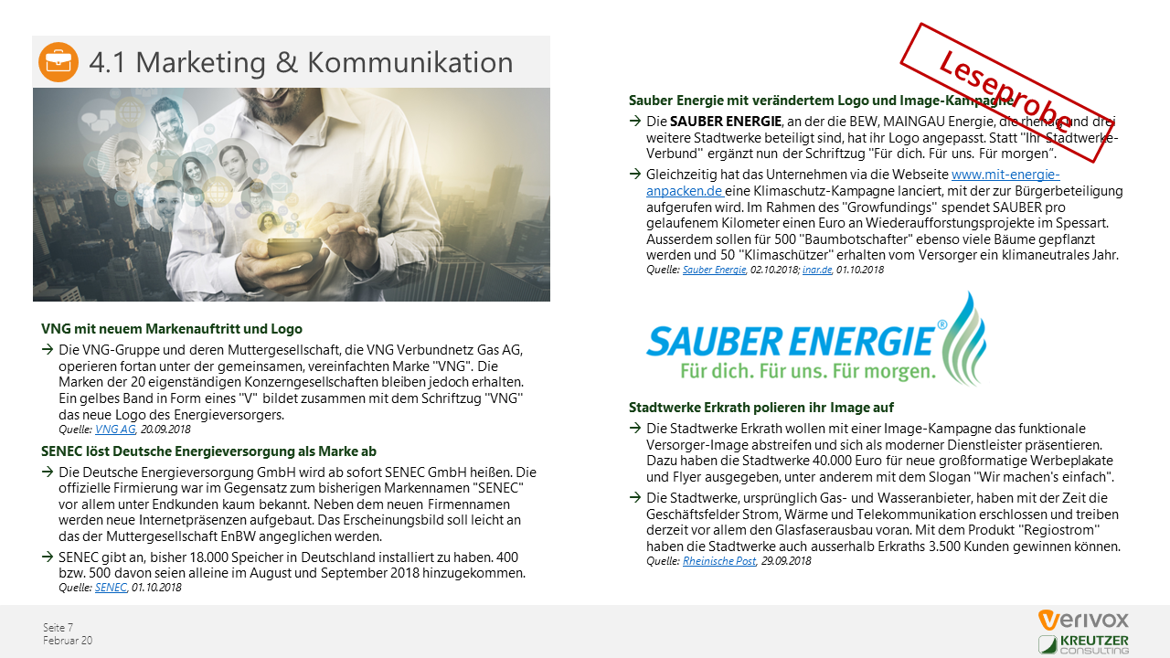 - NEU: Regionalisierte Analysen zum vertrieblichen Umfeld regional aktiver Versorger