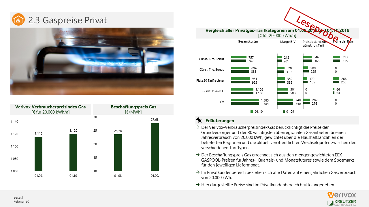 KREUTZER Consulting und Verivox analysieren monatlich die wesentlichen Entwicklungen im Wettbewerb um Haushalts- und Gewerbekunden auf dem deutschen Strom- und Gasmarkt.