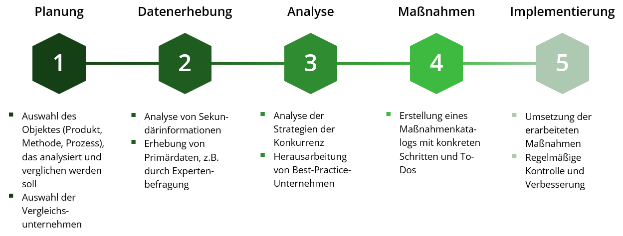Ziel jedes Unternehmens ist es, sich kontinuierlich zu verbessern. Ein beliebtes Management-Instrument zur Aufdeckung von Stellschrauben, die zur Verbesserung beitragen, ist das Benchmarking. Bei diesem werden eigene Produkte, Dienstleistungen, Prozesse oder Methoden mit mehreren Konkurrenzunternehmen (competitive Benchmarking) oder mit funktional ähnlich aufgestellten, aber nicht im direkten Wettbewerb stehenden Unternehmen (funktionales Benchmarking) verglichen.